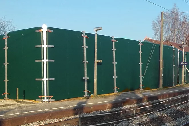 Die HPZ GmbH bietet patentierte mobile Schallschutzlösungen für verschiedenste Einsatzbereiche, die Lärm effektiv um bis zu 30 db reduzieren. Das größte System mit Aufbauhöhen bis 7 m schützt die Umgebung, wie Wohngebiete und dient zusätzlich als Sichtschutz. Zur Integration in die Feste Absperrung schützt unser zweites System Mitarbeitende im Gleisbereich. An Bauzäunen sorgt das dritte System für die Reduzierung von Schallemissionen. Mehr über die Produkte der HPZ erfahren ...